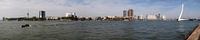 Panorama foto van Rotterdam aan de maas, met rechts de erasmusbrug.