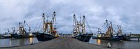 Deze foto, genaamd 'Panorama haven Stellendam' is gemaakt bij de buitenhaven van Stellendam (Zuid-Holland, Nederland). Terugkerend van een teleurstellende fototrip kwam ik langs deze locatie. De vissersschepen lagen aan de kade, nadat ze een week op zee zijn geweest. Een mooi decor voor avond- en panoramafotografie