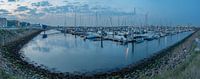 Panorama foto van de jachthaven van zeepoort IJmuiden geschoten na zonsondergang.