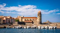 Koop de foto Panorama kerk en haven in Collioure aan de Cote Vermeille in Zuid-Frankrijk van Dieter Walther op canvas, aluminium dibond, (ingelijste) fotoprint, behang en ArtFrame, op maat geprint in Fine-Art kwaliteit.
