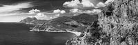 Panorama kustlandschap van het eiland Corsica in zwart-wit. van Manfred Voss, Zwart-Wit Fotografie