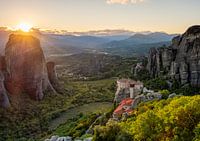 Over ‘Panorama landschapsfoto van een klooster in Meteora tijdens zonsondergang | Reisfotografie Griekenla’ van Teun Janssen