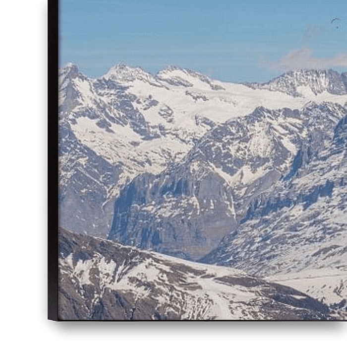 Koop dit landschapskunstwerk Panorama met Eiger Mönch en Jungfrau in winter met sneeuw van Martin Steiner op canvas, aluminium dibond, (ingelijste) fotoprint, behang en ArtFrame, op maat geprint in Fine-Art kwaliteit.