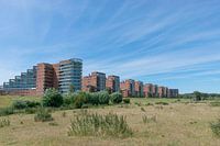 De moderne Maasboulevard in 's Hertogenbosch . Mooie dag met wat sluierbewolking maakt dit tot een strak plaatje