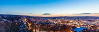 Panoramisch uitzicht vanaf de Uhlandshöhe op de TV-toren en het stadscentrum bij schemering in de winter, Baden-Württemberg, Duitsland