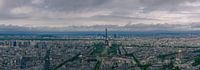 Een panoramische uitkijk over Parijs vanaf het dak van de Tour Montparnasse; we zien bijna alle hoogtepunten van Parijs: de Eiffeltoren, Dôme des Invalides, de Arc de Triomphe en in de verte het moderne Parijs in La Defense.