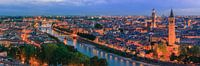 Een weids 3:1 panorama beeld van een avond in Verona gezien vanaf Castel San Pietro.