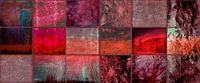 De kleur is hoofdzakelijk rood, dat is de bindende factor in het geheel. 18 vierkante vlakken vormen een geheel.