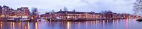 Panorama van Amsterdam aan de Amstel bij avond in Nederland