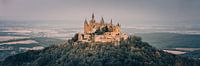 Een weids panoramabeeld van Burg Hohenzollern, gezien vanuit de Zellerhorn Gipfel.