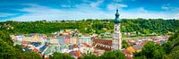 Uitzicht op de stad Burghausen en de rivier de Salzach op een zomerse dag