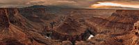 Een zeer breed 3:1 panoramisch beeld van een zonsondergang bij Tatahatso Point, in Marble Canyon, met zicht op de Colorado rivier, in het noorden van Arizona, in het Amerikaanse zuidwesten.
