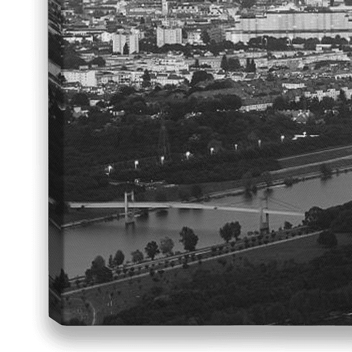 Een groots en weids panorama beeld in Zwart-Wit van het uitzicht over Wenen, de hoofdstad van Oostenrijk. De foto is gemaakt vanaf de top van de Leopoldsberg na zonsondergang.