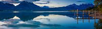 De Allgäuer bergen weerspiegeld in de Forggensee op een herfstavond