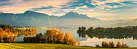 Herfst, en zonsopkomst bij de Forggensee in het zuiden van Duitsland nabij Füssen in de streek Königswinkel, in het district Ostallgäu in Beieren.