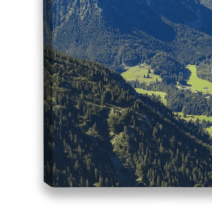 Koop de foto Panorama van de Gaisalphorn naar Oberstdorf en de Lorettowiesen, met de Fellhorn op de achtergrond van Walter G. Allgöwer op canvas, aluminium dibond, (ingelijste) fotoprint, behang en ArtFrame, op maat geprint in Fine-Art kwaliteit.