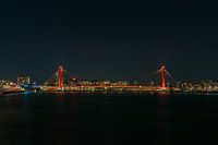 De Willemsbrug in Rotterdam is een beetje ondergesneeuwd in vergelijking met de Erasmusbrug. Maar eigenlijk is de Willemsbrug, zeker 's avonds, een mooie elegante brug. Met zijn kenmerkende rode kleur is deze brug direct herkenbaar.