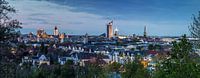 Panorama van de skyline van Leipzig in het blauwe avonduur van Frank Herrmann