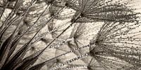 "Panorama van druppels op een morgenster (Tragopogon)" is een macrofoto van waterdruppels op de pluisjes van een Tragopogon (in het Nederlands heet deze bloem een paarse Morgenster) . Deze bewerkte foto heeft bruine- grijstinten. Door het contrast en de kleur vind ik dit werk bijna iets industrieels hebben.