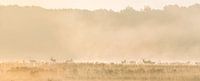 Koop de foto Panorama van edelherten tijdens het gouden uur van Ans Bastiaanssen op canvas, aluminium dibond, (ingelijste) fotoprint, behang en ArtFrame, op maat geprint in Fine-Art kwaliteit.