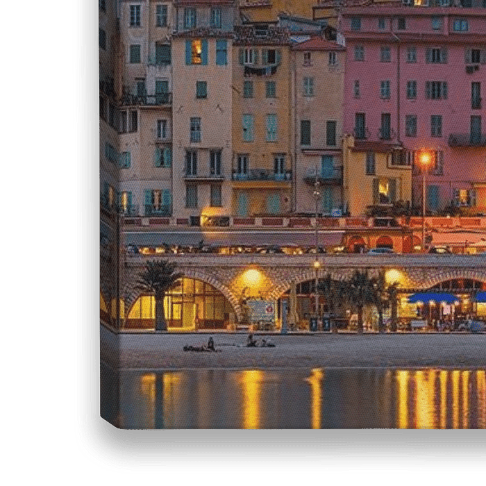 Koop de foto Panorama van een avond in Menton, Frankrijk van Henk Meijer Photography op canvas, aluminium dibond, (ingelijste) fotoprint, behang en ArtFrame, op maat geprint in Fine-Art kwaliteit.