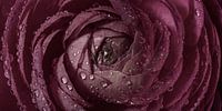 Panorama van een oud roze bloem met druppels van Marjolijn van den Berg