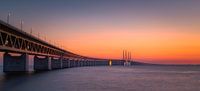Panorama van een zonsondergang bij de Oresund brug, gezien vanuit Malmö.