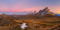Koop dit landschapskunstwerk Panorama van een zonsopkomst op de Giaupas, Dolomieten, Italië van Henk Meijer Fotografie als print op canvas, aluminium dibond, (ingelijste) fotoprint, behang en ArtFrame. Voor jou op maat geprint in Fine-Art kwaliteit.