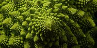 "Panorama van groene Romanesco" is een foto van een groene Romanesco van bovenaf gefotografeerd. Doordat er vrij hard licht komt vanaf linksboven, ontstaat er een contrast in deze foto van de lichte linkerbovenhoek en een schaduwrijke donkerdere rechtsonder hoek. De natuurlijke aparte fractals geven de Romanesco zijn unieke uiterlijk. Daarnaast heeft de Romanesco een frisse groene (of geelgroene) kleur.