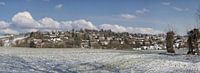 Panorama van het Hulsveld in Simpelveld onder een dun laagje sneeuw tijdens de winter van 2018