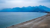 Panoramafoto van het strand van Konyaalty in Antalya. Het Beydağları-gebergte op de achtergrond.