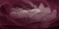 "Panorama van oudroze bloemblaadjes" is een bewerkte macrofoto van een roze Ranonkel waarbij de blaadjes nog net niet allemaal open zijn gegaan.