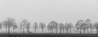 Koop de foto Panorama van rode VW-bus op weg met kale bomen in de mist. van Jan Fritz als print op canvas, aluminium dibond, (ingelijste) fotoprint, behang en ArtFrame. Voor jou op maat geprint in Fine-Art kwaliteit.