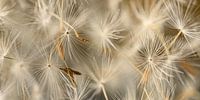 "Panorama van weggewaaide pluisjes" is een macrofoto van pluisjes van een paardenbloem, die de pluizenbol hebben verlaten en nu klaar zijn om de wereld in te trekken en een nieuw plekje te zoeken.