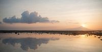 Panorama natuur en landschapsfoto van een ondergaande zon achter de vulkaan Agung, Bali. Foto is genomen vanuit Gili Trawangen, naast Gili Air and Gili Meno