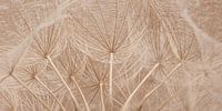 "Panorama vanuit de binnenkant van een morgenster"is een macrofoto van de pluisjes van een morgenster van schuin onderaf gefotografeerd. (Deze bewerkte) foto heeft zachte hout kleurige tinten / pastel kleuren / wit / goudachtige kleur / champagne kleur/ bruin / beige tinten. Deze foto is bijgesneden tot panorama…