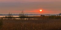 Een 2:1 panorama beeld van een zonsondergang aan het Zuidlaardermeer, een 540 ha groot meer met daarnaast nog 120 ha aan oeverlanden, ten noorden van Zuidlaren en ten zuidwesten van Hoogezand.
