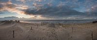Panorama zonsondergang nederlands strand. Zonsondergang op het nieuwe strand van Petten in noord-holland.