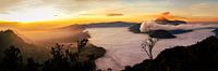 Panorama bij zonsopgang op de vulkaan Mount Bromo op het eiland Java in Indonesië