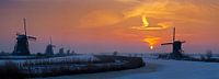Koop dit landschapskunstwerk Panorama zonsopkomst Kinderdijk in de winter van Anton de Zeeuw op canvas, aluminium dibond, (ingelijste) fotoprint, behang en ArtFrame, op maat geprint in Fine-Art kwaliteit.