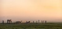 Panoramafoto koeien tijdens zonsopkomst in het ochtendlicht