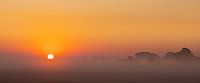 Panoramafoto van een mooie opkomende zon op een mistige ochtend