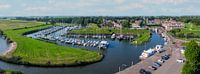 Op de foto zijn o.a. de Stadshaven, de Koepelkerk, de d'Orange molen en het oude raadhuis te zien.