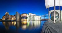 Koop de foto Panoramisch uitzicht in de Berlijnse regeringswijk van Frank Herrmann op canvas, aluminium dibond, (ingelijste) fotoprint, behang en ArtFrame, op maat geprint in Fine-Art kwaliteit.