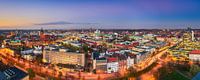 Panoramisch uitzicht op Hannover, Duitsland tijdens zonsondergang