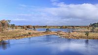 Koop dit landschapskunstwerk Panoramisch uitzicht op een wetland tegen een blauwe bewolkte hemel van Tony Vingerhoets als print op canvas, aluminium dibond, (ingelijste) fotoprint, behang en ArtFrame. Voor jou op maat geprint in Fine-Art kwaliteit.