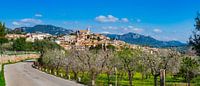 Panoramisch uitzicht op mediterraan dorp Selva op eiland Mallorca met prachtig landschap, Spanje, Mallorca, Balearen, Balearen, Middellandse Zee, Spanje