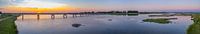 Zomerse zonsondergang over een brug over het Reevediep tijdens een prachtige zomeravond in augustus bij Kampen in Overijssel. Panorama uitzicht op grote hoogte.