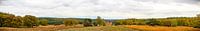 Panoramisch uitzicht over heidevelden bij de Loenermark op de Veluwe tijdens de herfst in Gelderland. Extra breed beeld.