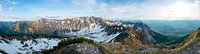 Panoramisch uitzicht vanaf de Entschenkopf op de Allgäuer Alpen met de Grünten, Großer Daumen, Nebelhorn, Rubihorn en de Hörner toppen.